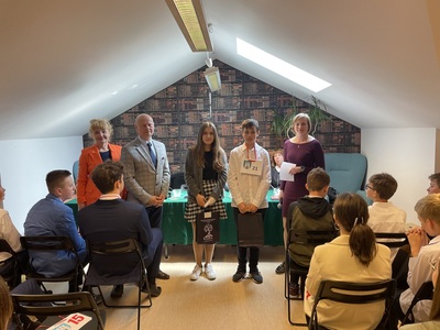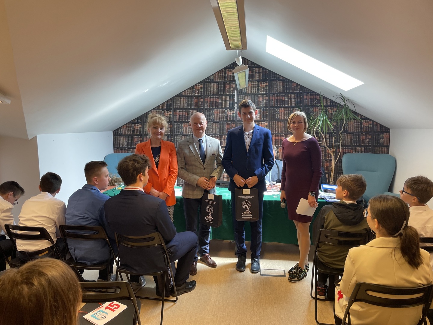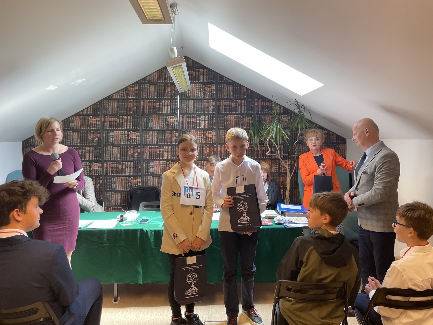 Finaliści konkursu nagrodzeni zostali bonami podarunkowymi do Empiku zakupionymi przez Dyrektora Biblioteki oraz książkami młodzieżowymi: „Ktosiek” i „Ktosiek 2”, które podarowała pani Beata Piliszek-Słowińska.
