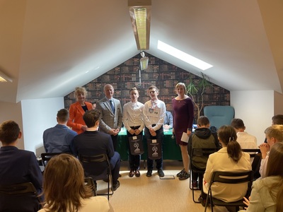 Zdobywcy trzech pierwszych miejsc oraz pedagodzy, którzy przygotowali finalistów otrzymali egzemplarze książki „Wszystkiemu winien Skarga” autorstwa doktora Remigiusza Matyjasa przekazane przez Burmistrza Gminy i Miasta Grójec pana Dariusza Gwiazdę, który przybył na finał turnieju.