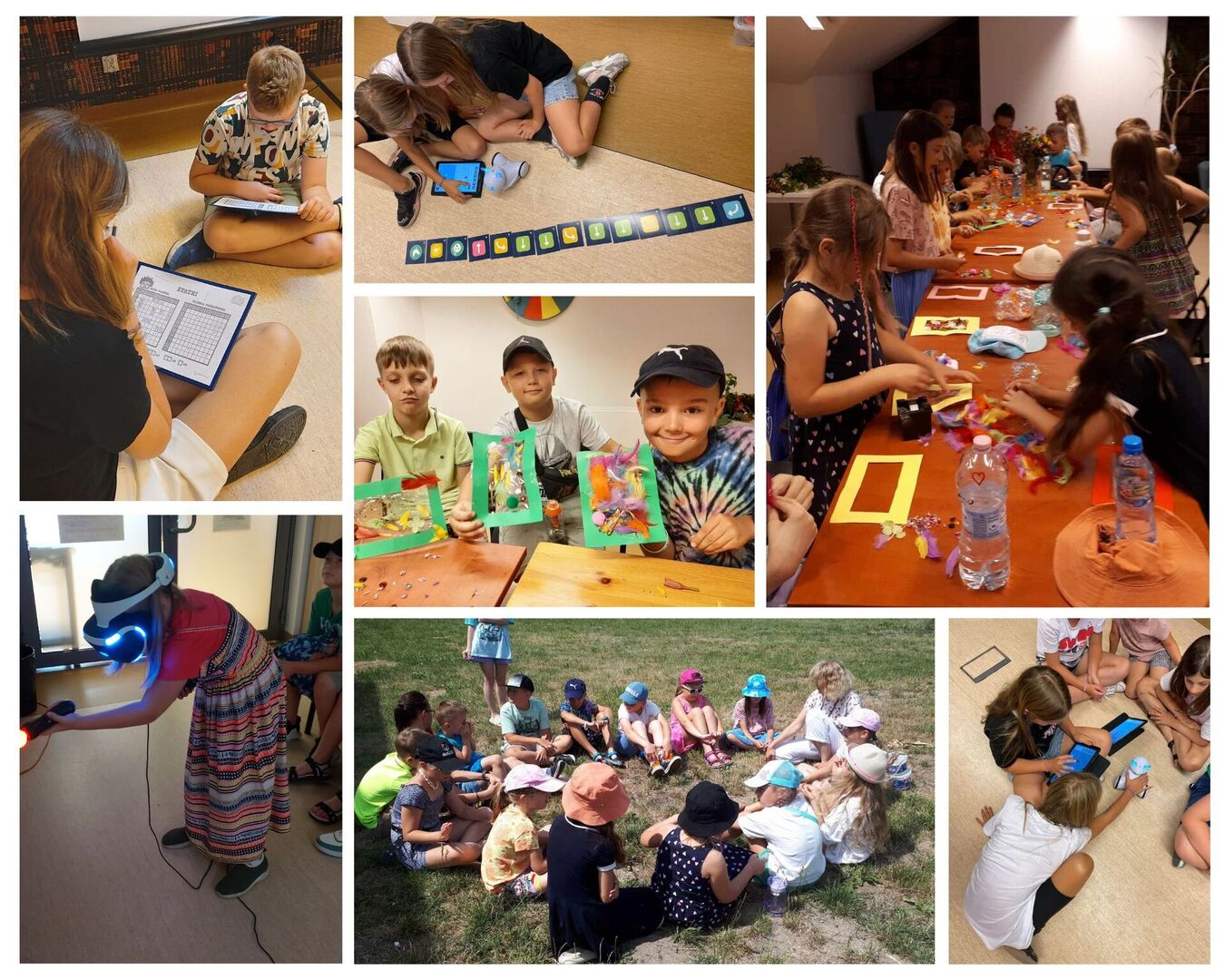Jak zwykle wakacje były zbyt krótkie, a tyle zmieściło się w nich frajdy, zabawy i emocji. Na zajęciach czas mijał zbyt szybko. Na naszych roześmianych gości czekały mamy i babcie. Niektórzy robili jeszcze przystanek aby wypożyczyć książki i filmy na letnie popołudnia. Wy też Drodzy Czytelnicy potraktujcie nasze gry jako inspirację i po prostu bawcie się dobrze.