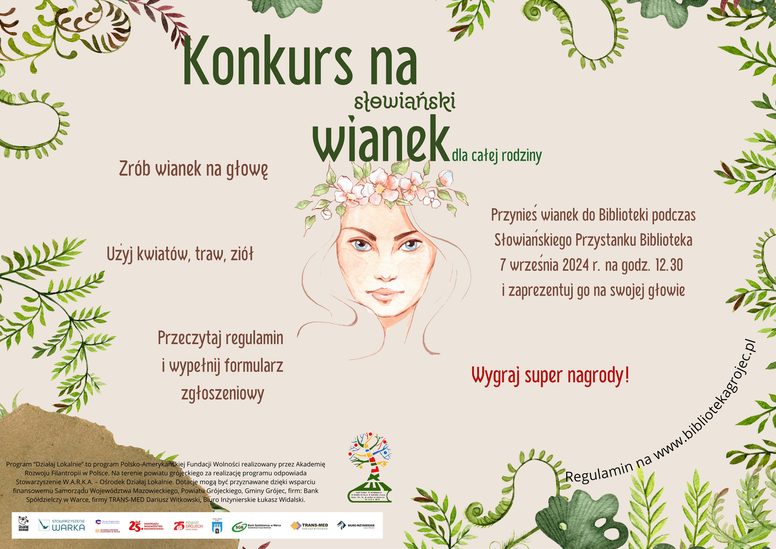 Wykorzystajcie rośliny, kwiaty, gałązki i inne skarby natury. Pokażcie swój talent. Z gotowym wiankiem zapraszamy 7 września na godzinę 12.30. Tego dnia razem będziemy świętować na Słowiańskim Przystanku Biblioteka.