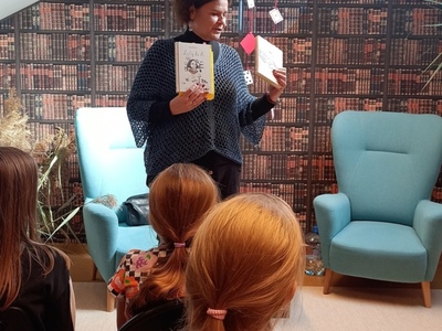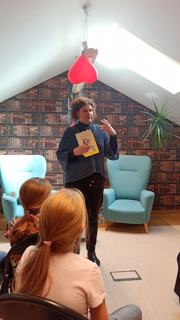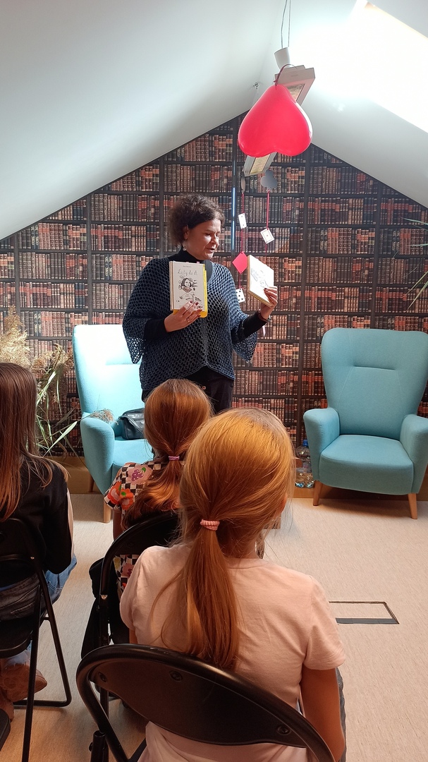Uczniowie klasy 4b i 6c z Publicznej Szkoły Podstawowej nr 2 im. Józefa Wybickiego w Grójcu wzięli udział 16.10.2024 w spotkaniu z pisarką Anną Sakowicz, które odbyło się w Miejsko-Gminnej Bibliotece w Grójcu. Spotkanie rozpoczęło się od pytania, skąd autorzy czerpią pomysły do swoich książek. Dzieci podawały różne odpowiedzi, wśród nich pojawiła się również – „z życia”. Okazało się, że właśnie życie stało się dla Anny Sakowicz inspiracją do napisania powieści „Listy do A. Mieszka z nami Alzheimer”. Książka ta wiąże się z zapadnięciem mamy pisarki na chorobę Alzheimera. Pani Anna przeczytała fragment swojego utworu. Zaprezentowała również książkę, która wyróżnia się piękną szatą graficzną, jest starannie zilustrowana i wydana na papierze w kratkę, przypominającym papier listowy. Powieść ta została nominowana do prestiżowej nagrody IBBY. W konkursie tym promowane są wartościowe literacko i artystycznie książki dla dzieci. Autorka podkreśliła, że choroba Alzheimera jest trudnym tematem, ale uważa, że z dziećmi należy rozmawiać o wszystkim , także o sprawach trudnych. Dziecięca publiczność żywo reagowała na słowa pisarki, uczniowie spontanicznie dzielili się swoimi przemyśleniami i skojarzeniami. Pani Anna zaznaczyła, że choroba Alzheimera ma też czasem śmieszne momenty, kiedy chory robi niecodzienne rzeczy, np. podlewa nieistniejące kwiatki w szufladzie. Następna część spotkania poświęcona została grom i zabawom ćwiczącym pamięć i koncentrację. Dzieci miały za zadanie zapamiętać listę zakupów, numer telefonu czy też odczytać słowa od tyłu. Aktywności te zaangażowały uczniów i chętnie brali udział w zabawie. Autorka zaprezentowała również swoją powieść dla dzieci „Skrzydlate książki”. Akcja tego utworu toczy się w Gdańsku, podczas II wojny światowej. Bohaterami są dwaj chłopcy – Polak i Żyd oraz dziewczynka o imieniu Klara, która jest Niemką. Ważną rolę w tej lekturze odgrywa introligator Samuel, który w swoim zakładzie dorabia skrzydła książkom. Dzięki temu dzieci mogą przenieść się do magicznej Krainy Nienapisanych Książek. Utwór ten jest poetycką metaforą wojny. Spotkanie z panią Anną Sakowicz było bardzo interesujące i wartościowe. Autorka nawiązała kontakt z dziecięcą publicznością i zachęciła do wypowiedzi. Z pewnością spotkanie nie tylko wzbogaciło wiedzę literacką uczniów, ale także zainspirowało do czytania i rozwijania wyobraźni.