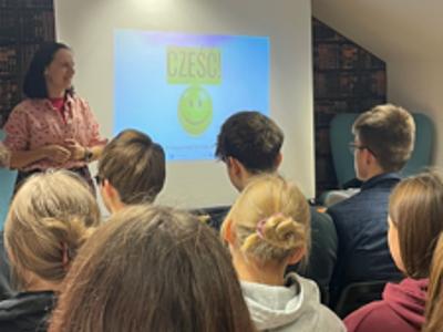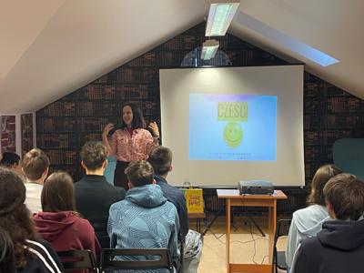 Spotkanie z Justyną Suchecką: dziennikarką TVN24, autorką cenionych reportaży i książek, laureatką Nagrody Korczaka 2024 oraz jedną ze „100 Kobiet Roku 2022” według magazynu Forbes Women, stało się dla uczniów wyjątkową lekcją o świecie mediów, komunikacji i sile młodych ludzi. Dzięki niej mogliśmy zajrzeć „od kuchni” do świata współczesnego dziennikarstwa, a emocjonująca rozmowa pozwoliła zrozumieć, jak różne pokolenia patrzą dziś na świat.