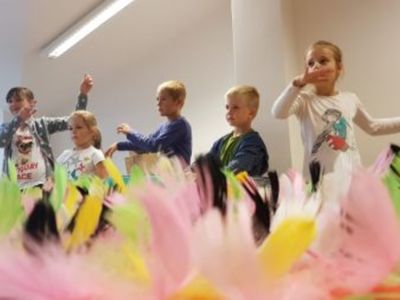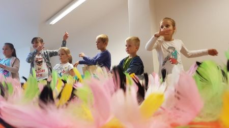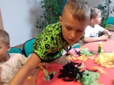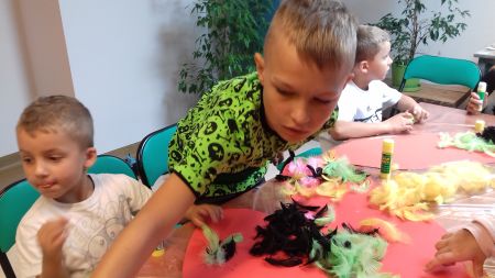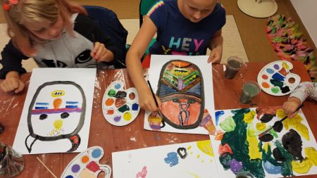 Kropki, kropki, kropki… są używane przez Aborygenów – rdzennych mieszkańców Australii. Kropkowanie jest najbardziej charakterystycznym elementem sztuki aborygeńskiej i właśnie jemu zostały poświęcone kolejne warsztaty. Boo-mar-rang, czyli kij, który wraca również nie został na tych zajęciach pominięty. Zainteresował przede wszystkim chłopców. Jest używany przez Aborygenów do walki i polowań, tworzony z drewna, kształtem przypomina trochę banana. Dzieci zrobiły kilka swoich sztuk – oczywiście