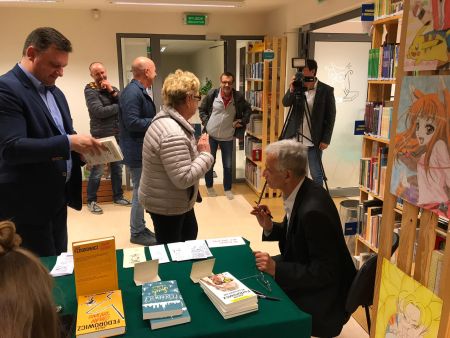 Nasz gość to niezwykle barwna osobowość. Spotkanie trwało blisko dwie godziny, wyzwoliło wiele pytań od jego uczestników. Satyryk swoje opowieści życiowe przeplatał zabawnymi anegdotami, scenkami rodzajowymi, dał świetny popis recytacji i interpretacji, stosownie modelując głos tworzył odpowiednią atmosferę. Z przyjemnością, zarówno przed jak i po spotkaniu, rozdawał autografy. Było to wyjątkowe popołudnie, nieczęsto bowiem spotykamy osoby, które zawodowo zajmują się rozśmieszaniem.