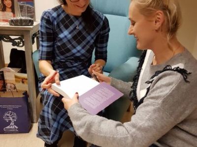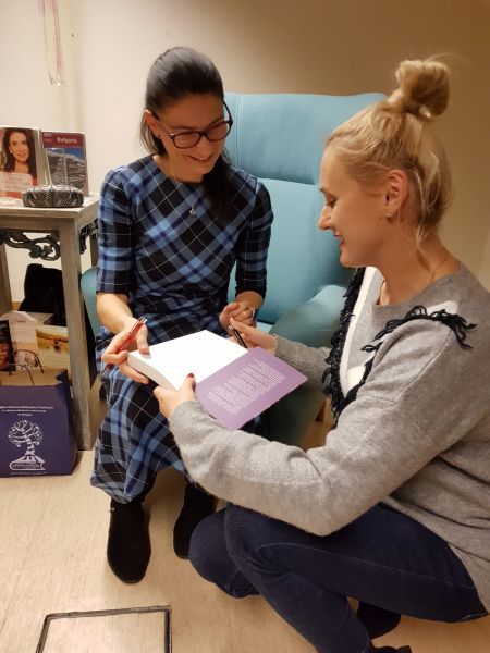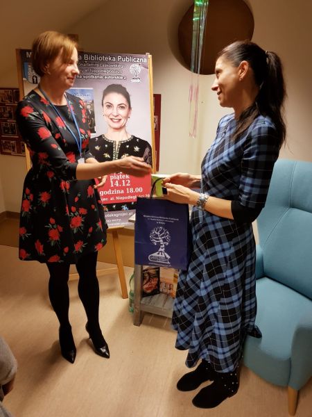 W dalszej kolejności spotkania nie zabrakło dociekliwych pytań od publiczności, tych związanych z pisaniem oraz życiem prywatnym autorki. Dziękując za przemiłą rozmowę Dyrektor Kinga Majewska wręczyła pisarce niedawno promowaną monografię naszej Biblioteki. A po spotkaniu można było kupić książę autorki, zrobić z Nią wspólne zdjęcie oraz otrzymać dedykację wraz z pięknym uśmiechem pisarki, od której emanuje pozytywna energia, optymizm i ciepło.