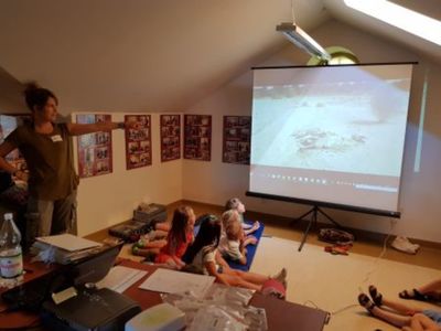 Przy ruinach średniowiecznej baszty poczujemy bliskość stawów: