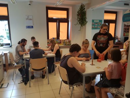 Dużym zainteresowaniem cieszyły się gry planszowe i fabularne, w które można było zagrać z zaprzyjaźnionymi z Biblioteką instruktorami w godz. 16.00-22.00. Były Kraby, Patyczaki, Wolsung, Monopoly, Owce na wypasie, Splendor, Catan, 5 sekund, Gobblety i wiele, wiele innych.