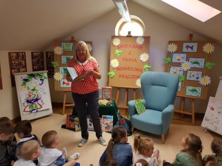 14 maja 2018 r. odbyło się w Bibliotece spotkanie autorskie z Agnieszką Frączek - doktorem nauk humanistycznych, wykładowcą na Uniwersytecie Warszawskim, germanistką, leksykografem, redaktor naukową Wielkiego słownika polsko-niemieckiego, niemiecko-polskiego PWN, który został wyróżniony przez „Magazyn Literacki Książki”. Laureatka m.in. Nagrody Edukacja XXI, wyróżnienia IBBY Dzięcięcy Bestseller Roku – za Kanapkę i innych wierszy kanapek. Pani Agnieszka Frączek jest autorką wierszy i opowiadań dla dzieci np. Berek literek czyli Psoty od A do Z, Byk jak byk, rzecz nie całkiem poważna o całkiem poważnych błędach językowych, Ciekawska Kaczuszka Omi, Jedna literka a zmiana wielka, W Straszydłowie i wielu wielu innych.