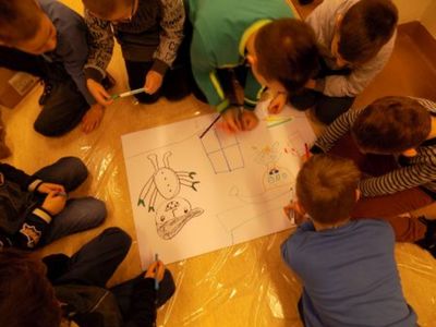 Uczestnicy programu mieli kolejną już niezwykłą okazję na spotkanie z twórczością poetki panią Agnieszką Frączek. Nie zabrakło więc zabawnych wierszy, a także śmiesznych, ale pouczających opowieści. Po wysłuchaniu utworów pani Agnieszki Frączek uczniowie z zapałem przystąpili do wizualizacji swoich pomysłów. Powstały ciekawe, twórcze prace, które były podsumowaniem warsztatów. Na zakończenie zajęć uczestnicy spotkania dowiedzieli się kilku ciekawostek o poetce i rozszerzyli swoją wiedzę o jej twórczości. Warsztaty poprowadzone w bardzo profesjonalny i ciekawy sposób sprawiły uczestnikom dużą frajdę. Pełni czytelniczych wrażeń powrócili do Zaborowa. Serdeczne podziękowania za organizację warsztatów składamy pani Kindze Majewskiej, dyrektor biblioteki w Grójcu oraz pani bibliotekarce Magdalenie Sepczyńskiej.