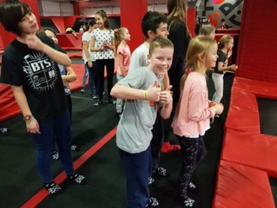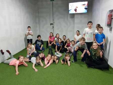 16 .01. 2018 roku rozpoczęliśmy ferie w Bibliotece. Udaliśmy się tego dnia na wyprawę do Hangaru 646. Kto tam już był albo widział, wie dobrze, że nudzić się tam nie można. Podczas podróży do Warszawy niektóre dzieci rysowały, robiły na szydełku (co teraz jest niezwykłą rzadkością). W Hangarze 646 zaplanowano dla nas całą godzinę z trenerką, która najpierw zrobiła rozgrzewkę a potem dała dzieciom szansę szaleństwa na trampolinach. Dużą atrakcją były również skoki na ogromną poduchę. Skoki oraz zabawa i zawody wymyślone przez trenerkę zmęczyły uczestników naprawdę bardzo. Jednak szaleństwo w parku trampolin wymaga bardzo dużo wysiłku ale to ogromny plus, że mogli się rozruszaćJ. Mamy nadzieję, że jeszcze tam kiedyś wrócimy.