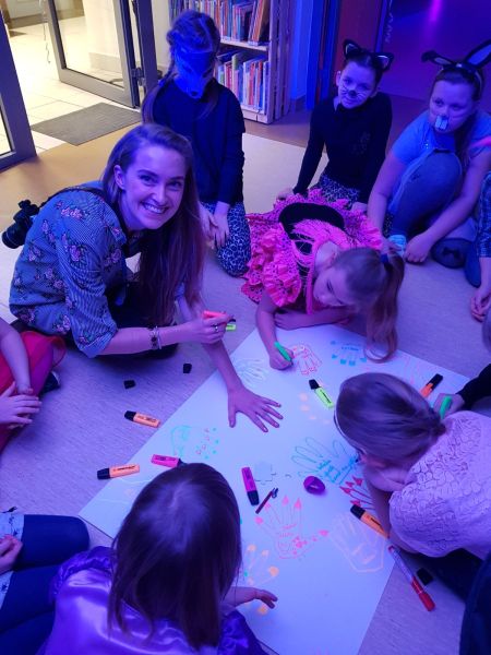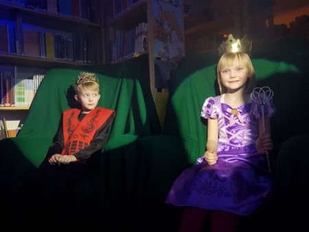 Ostatnie wydarzenie podsumowujące ferie w Bibliotece odbyło się 26.01.2018. Do Biblioteki zaczęły schodzić się dzieci w jak najbardziej wymyślnych strojach. Niektórzy byli tak wspaniale ucharakteryzowani, że ciężko było ich poznaćJ. Był wśród nas wampir, czarownica, policjant, wojownik ninja, księżniczka, kotki, świnki i króliczki, góralki i wiele innych. Zabawę prowadzili niezastąpieni panowie z Krzyżanowski Event Group. Na wstępie każdy zostawił swój ślad w Bibliotece czyli odbił swoją dłoń jak gwiazda Hollywood i podpisał się na dużej kartce. Od samego początku mali uczestnicy byli bacznie obserwowani przez organizatorów. A dlaczego? Z bardzo ważnego powodu-wybór króla i królowej balu. Wszyscy starali się zaprezentować z jak najlepszej strony. Oczywistym jest, że prezentowali się wprost wspaniale, każdy z nich był królem i królową balu. Jednak wiemy, że trzeba było wybrać tylko dwie osoby. I tak właśnie królem balu przebierańców został Tadeusz Mikołajczyk a królową Michalina Florczak. Pragniemy im pogratulować! A pozostałym dzieciom podziękować za aktywne uczestnictwo i wspólna zabawę!. Bardzo, bardzo dziękujemy! I zapraszamy do naszej Biblioteki jak najczęściej!:)