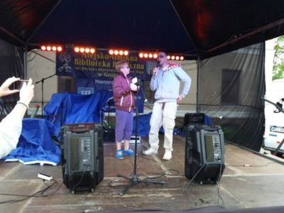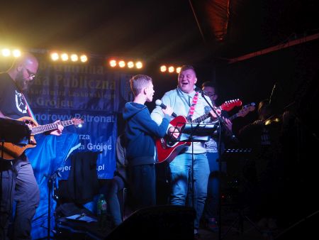 z zespołem, który wystąpił po raz pierwszy na naszej scenie. Biblioteka na tę okazję przygotowała śpiewniki, dlatego też zebrani mogli śpiewać razem