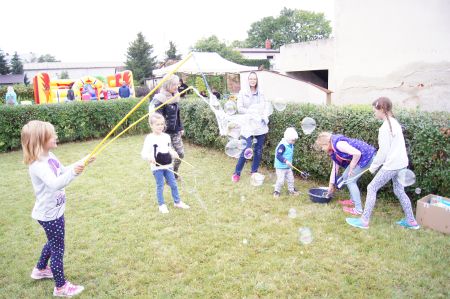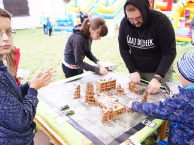 Gry planszowe to ważna rozrywka podczas wakacji. Dlatego też Grajdołek przywiózł ogromną ilość planszówek, w które dzieci mogły zagrać same, ale też z dziadkami, czy z rodzicami albo z rówieśnikami. Dzieci bardzo chętnie włączały się w zabawę, a gry wywoływały bardzo duże emocje. Kolejki tworzyły się również tam gdzie znajdował się dmuchany zamek i zjeżdżalnia, z której skorzystały także panie z Biblioteki. Panowie z firmy 4in1 Paweł Pietrzyk mieli niekończący się szereg chętnych do kul wodnych, które jak zwykle zrobiły największą furorę.