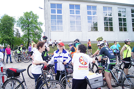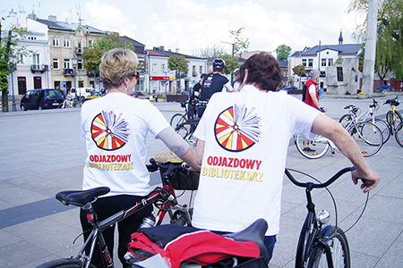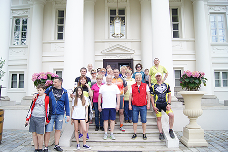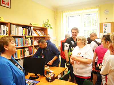 Stąd ruszyliśmy do Belska. Tu czekała na rowerzystów kierownik Biblioteki Gminnej – pani Maria Kornaszewska, która w ciekawy sposób przedstawiła historię placówki. Pierwsza ogólnodostępna ale odpłatna biblioteka w tej miejscowości została założona przez Koło Młodzieży Wiejskiej w 1922 roku. Po zakończeniu wojny, przez kolejne lata placówka funkcjonowała w różnych lokalach. Obecnie mieści się w nowoczesnym budynku Urzędu Gminy, Tam mają swoją siedzibę władze samorządowe, które były obecne na spotkaniu