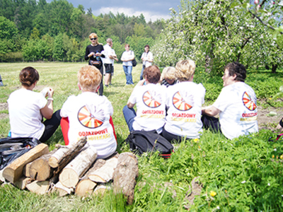 i powitała nas pani Izabela Majchrowska - bibliotekarz z filii bibliotecznej w Lewiczynie. Można był chwilę odpocząć słuchając opowiadań z tomiku ”Legendy Krainy Kwitnących Jabłoni”.