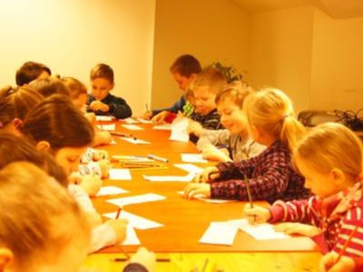 Grupa przedszkolna mogła poznać bibliotekę i jej zasoby. Następnie uczestniczyła w grze Kalambury. Dzieci rozpoznawały i wybierały kolory, losowały zagadki i prześcigały się w odpowiedziach. Za aktywność i wiedzę można było otrzymać atrakcyjną nagrodę.
