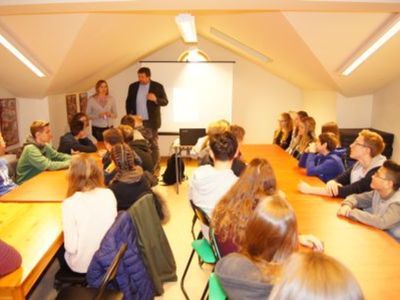 Kontynuując spotkania, w czasie których przybliżamy młodzieży sylwetki bohaterów narodowych zaprosiliśmy pana Jarosława Górskiego, aby przybliżył postać Tadeusza Kościuszki. Młodzież gimnazjalna mogła wysłuchać interesującego wykładu, w którym gość przedstawił postać Tadeusza Kościuszki na tle szerokiej panoramy politycznej, gospodarczej, społecznej ówczesnej Polski. Uczniowie dowiedzieli się, że bohater dzisiejszego spotkania „przyszedł na świat w bardzo niedobrym momencie”. Polska była w stanie totalnego upadku. Przyczyniły się do tego i wojny kozackie i potop szwedzki. Na przykład Grójec przez potop szwedzki był totalnie zniszczony i już nigdy nie odzyskał swojej dawnej świetności. Polska była słabym państwem. Nie miała regularnej armii. Król Stanisław August Poniatowski widział konieczność, aby reformować kraj. Zaczął organizować różne instytucje, z których miałaby wyłonić się elita. Jedną z instytucji była Szkoła Rycerska, która kształciła profesjonalną kadrę oficerską. W „Prawidłach dla Szkoły Rycerskiej” książę Czartoryski pisał o wzorze kadeta: „Powinien Ojczyznę swoją kochać i jej dobro nade wszystko i sposobić się do tego, aby mógł poświęcić się na jej usługi, powinien być cnotliwy, pełen uszanowania dla zwierzchności, dobroczynności i afektu dla równych, względu dla niższych.” Wychowankiem Szkoły Rycerskiej był Tadeusz Kościuszko. Tam ukształtowały się jego poglądy i postawa: honorowość, patriotyzm, szacunek do ludzi, poświęcenie dla kraju i innych, walka o to w co wierzył. Kościuszko walczył o prawa chłopów, kobiet i wszystkich innych ofiar dyskryminacji. „Był prawdziwym księciem tolerancji" - pisze Alex Storożyński - prezes Fundacji Kościuszkowskiej. Cały majątek przeznaczył na wykup murzyńskich niewolników. Niestety testament ten nie został wykonany. Kościuszko z pewnością wyprzedzał swoją epokę, nie tylko zmysłem militarnym, ale też wrażliwością na drugiego człowieka.