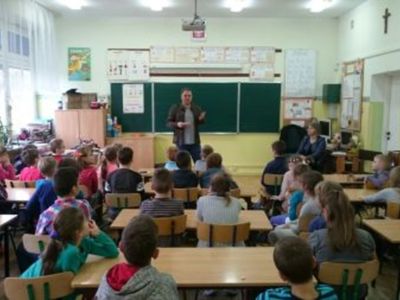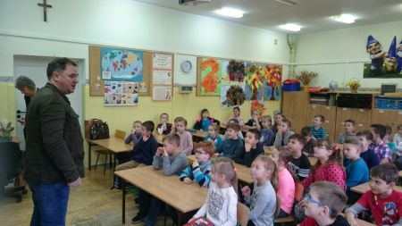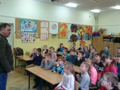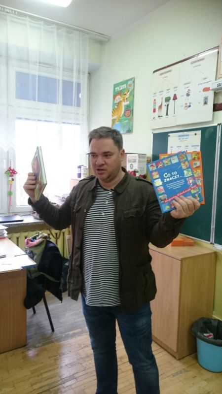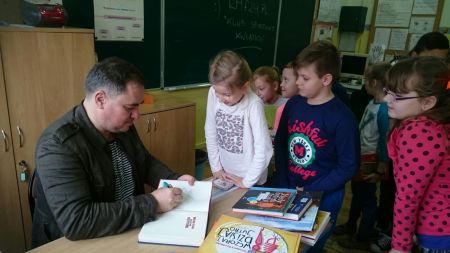 Kilka dni temu naszą szkołę odwiedził pisarz Grzegorz Kasdepke. Bardzo się ucieszyłam, bo czytałam już sporo jego książek. Były ekstra. Pan Grzegorz przyjechał żeby poznać dzieci z Grójca. Wziął ze sobą duży plecak. Miał w nim ogromną ilość swoich książek. Wszystkie poukładał na biurku naszej pani i spytał się nas, kim chcemy zostać w przyszłości. Potem zaczął nam trochę opowiadać o sobie i o swoich książkach. Przeczytał nam jedną historię detektywa Pozytywki i rozdział książki Kacperiada.