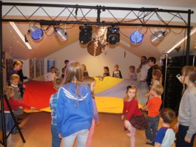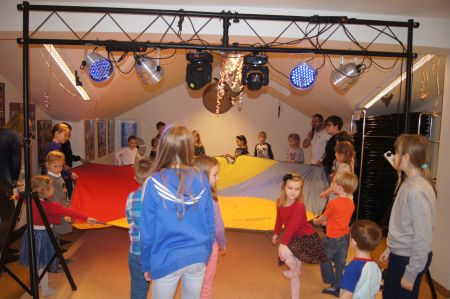 Podczas magicznego wieczoru nie zabrakło zabaw ruchowych i zajęć plastycznych. Koledzy z Krzyżanowski Event Group nie pozwolili się nam nudzić. Porwali do zabawy dzieci, rodziców i bibliotekarzy.