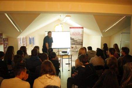 Gimnazjaliści wysłuchali barwnej legendy o realiach życia ówczesnej stolicy Kongresówki, które zdominowały sprawy monopolu alkoholowego. A ponieważ spowodowało to niebotyczne podniesienie cen alkoholu, do starożytnego grodu płynęła rzeka nielegalnie przemycanej gorzałki z prowincji, w tym także z Grójca i okolic. W to wszystko autor opowieści zręcznie wplatał wątki wielkiej historii zarówno Polski, jak i samego miasta. Pojawił się oczywiście Wielki Książę Konstanty i jego niemiłosiernie musztrowani żołnierze z ukochanymi „Czwartakami” na czele. Już chwilę później tenże sam książę uciekał z Belwederu przebrany w suknię swojej żony w czasie dramatycznej Nocy Listopadowej. Pod Olszynką Grochowską co i raz rozlegały się salwy armatnie i karabinowe ślące ołowiane pociski w maszerujące szeregi rosyjskiej piechoty. Byliśmy i na szańcach Woli z ginącym generałem Sowińskim i w reducie Ordona, który się wysadził w powietrze, a potem… potem dożył starości w dobrym zdrowiu. Pan Adam zabrał nas także w swej opowieści na spacer w ponurym cieniu wznoszącej się na północnych krańcach Warszawy Cytadeli.