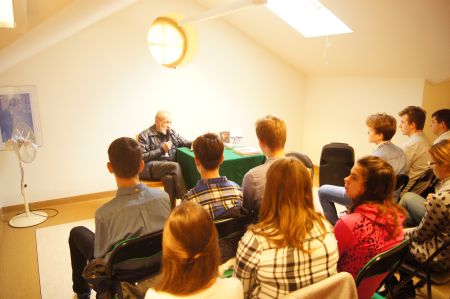 Gość rozpoczął spotkanie od odpowiedzi na pytanie czy decyzja o wybuchu Powstania Warszawskiego była błędem czy koniecznością. Opinie na ten temat są podzielone. Według pana Kuleszy powstanie musiało wybuchnąć, ponieważ było efektem straszliwego terroru. Wśród Poloków nastała chęć na odwetu za pięć okrutnych lat. Pan Juliusz wspomniał o swoim udziale w powstaniu, swojego dowódcę oraz kolegów. Walczył na Starym Mieście jako żołnierz Armii Krajowej w samodzielnej grupie PWB/17/5 (Podziemna Wytwórnia Banknotów), był uczestnikiem bojów o redutę Polskiej Wytwórni Papierów Wartościowych.