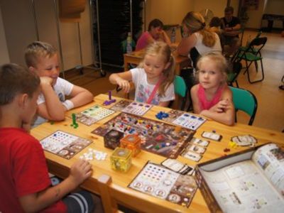 Gry planszowe zawładnęły uczestnikami zajęć. Dla najmłodszych były dostępne klasyki jak warcaby czy chińczyk, ale i Wolsung wzbudził duże zainteresowanie. Gracze gonili gąskę, zdobywali zamek i walczyli z maszynami Molocha w grze Neuroshima Hex. Wspaniale bawili się razem młodzież, dzieci i rodzice. Gry bez prądu ośmieliły i zbliżyły wszystkich uczestników.