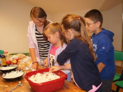W Bibliotece dla Dzieci i Młodzieży odbyło się spotkanie Posiłek ważna sprawa, na którym dzieci uczyły się same przygotowywać zdrowe śniadania i kolacje. Na stołach królowały twarożki z rzodkiewką i szczypiorem oraz przepyszne warzywne sałatki.