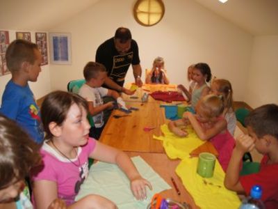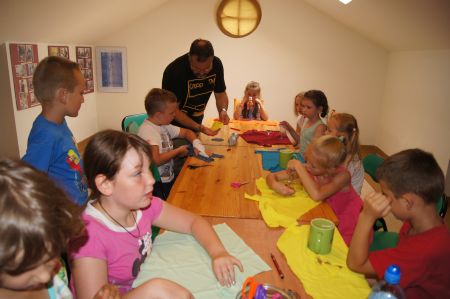 Szkoła samodzielności to strzał w dziesiątkę. Uczestnicy warsztatów uczyli się różnych czynności związanych z codziennymi pracami. Tym razem królowało szycie. Dzieci tworzyły na płótnie guzikowe obrazki jako trening posługiwania się igłą.